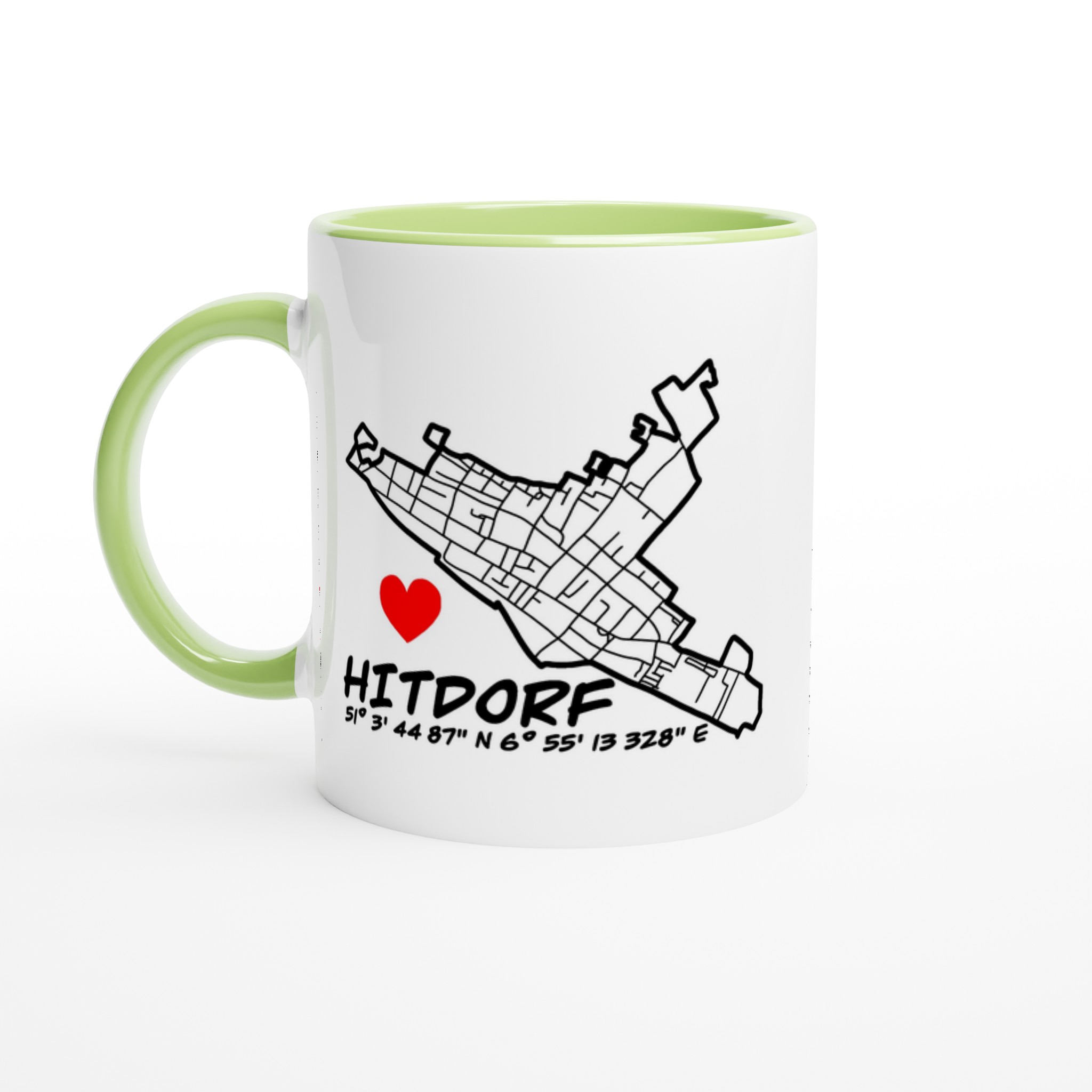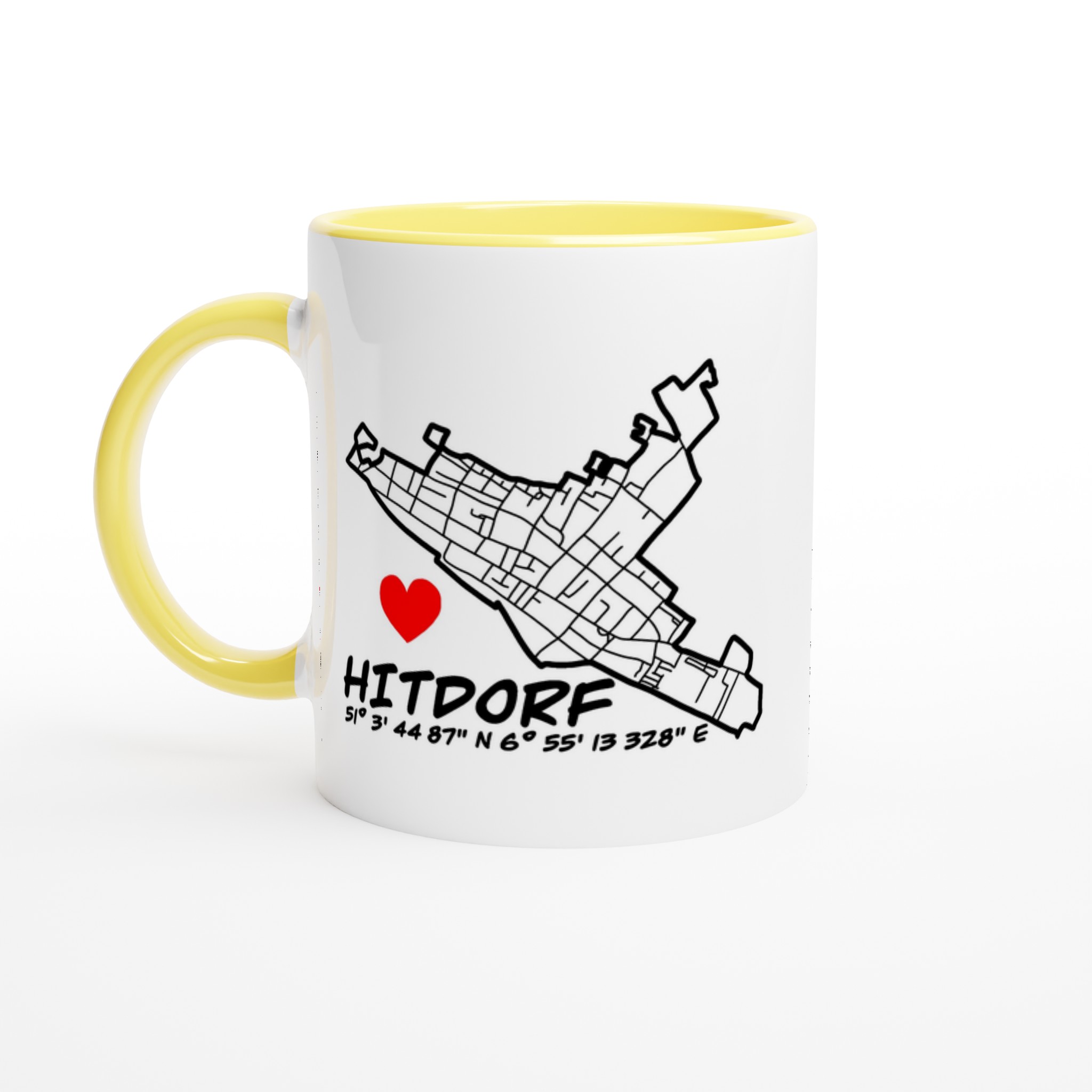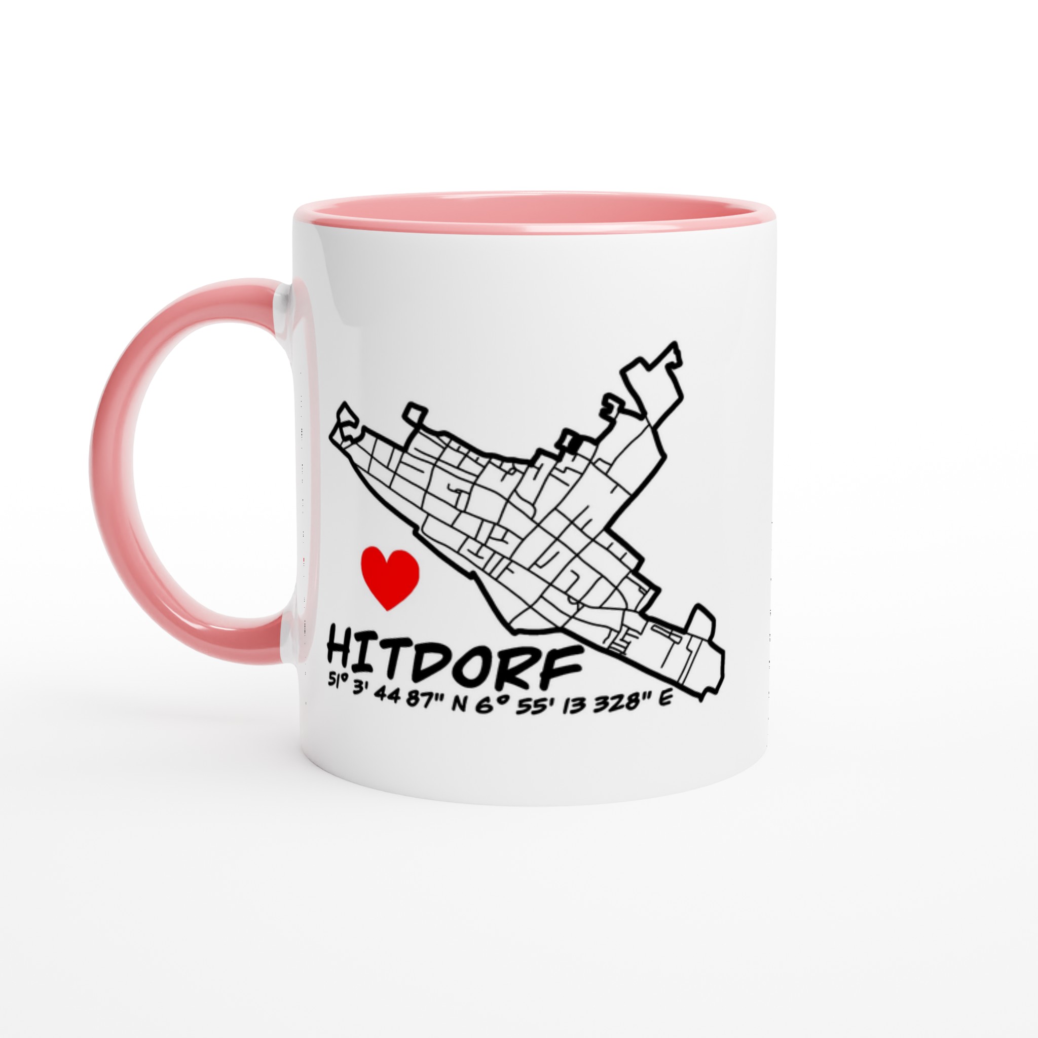 Diese besondere Keramiktasse verbindet Heimatliebe mit modernem Design. Das detailreiche Straßennetz von Hitdorf in Kombination mit den GPS-Koordinaten, dem Schriftzug „Hitdorf“ und dem roten Herz macht sie zu einem echten Blickfang – persönlich, stilvoll und voller Bedeutung.