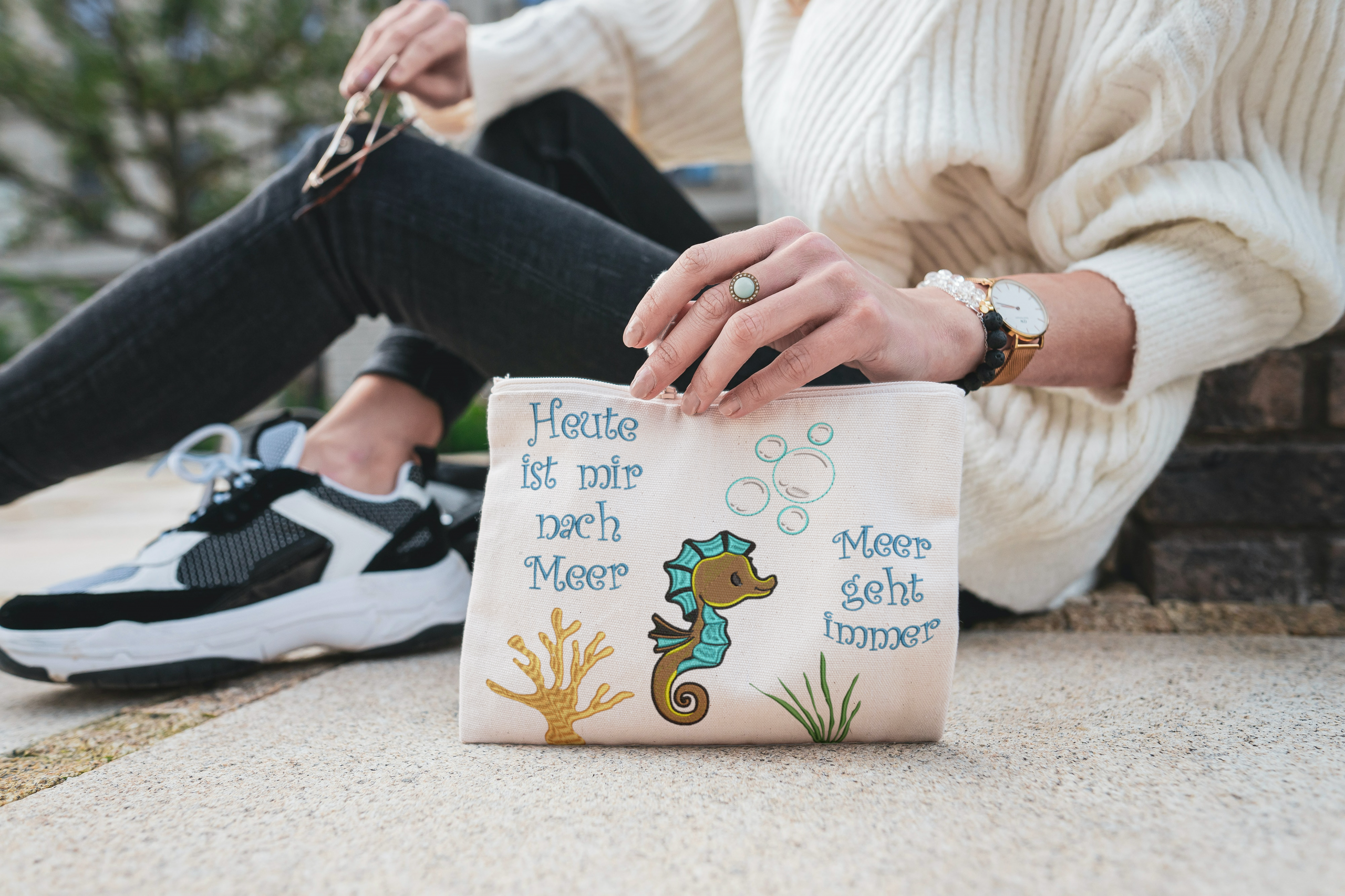 ♥ ♥ Nur die Schrift, nur das Seepferdchen, oder sollen auch noch ein paar Luftblasen, Korallen oder Seegras sein?