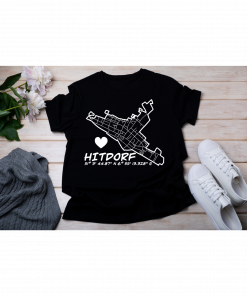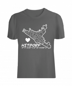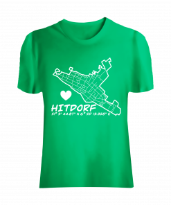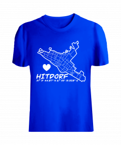 Ihr bekommt hier ein liebevoll bedrucktes TShirt, mit den Koordinaten und dem Straßennetz von Hitdorf.