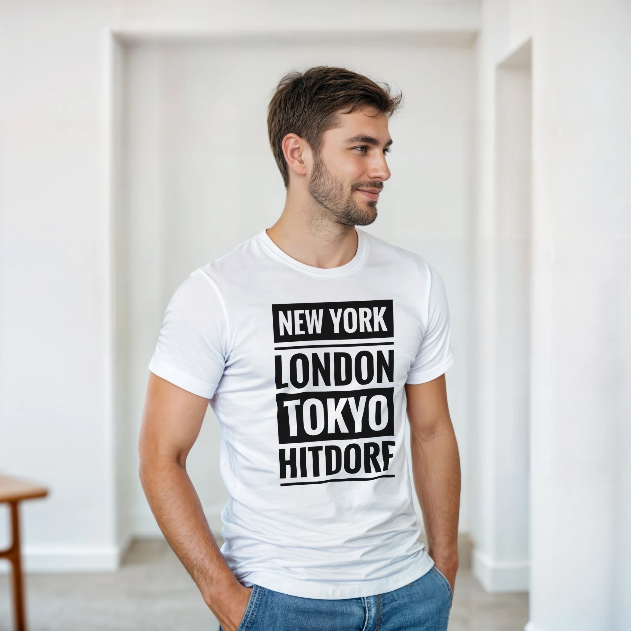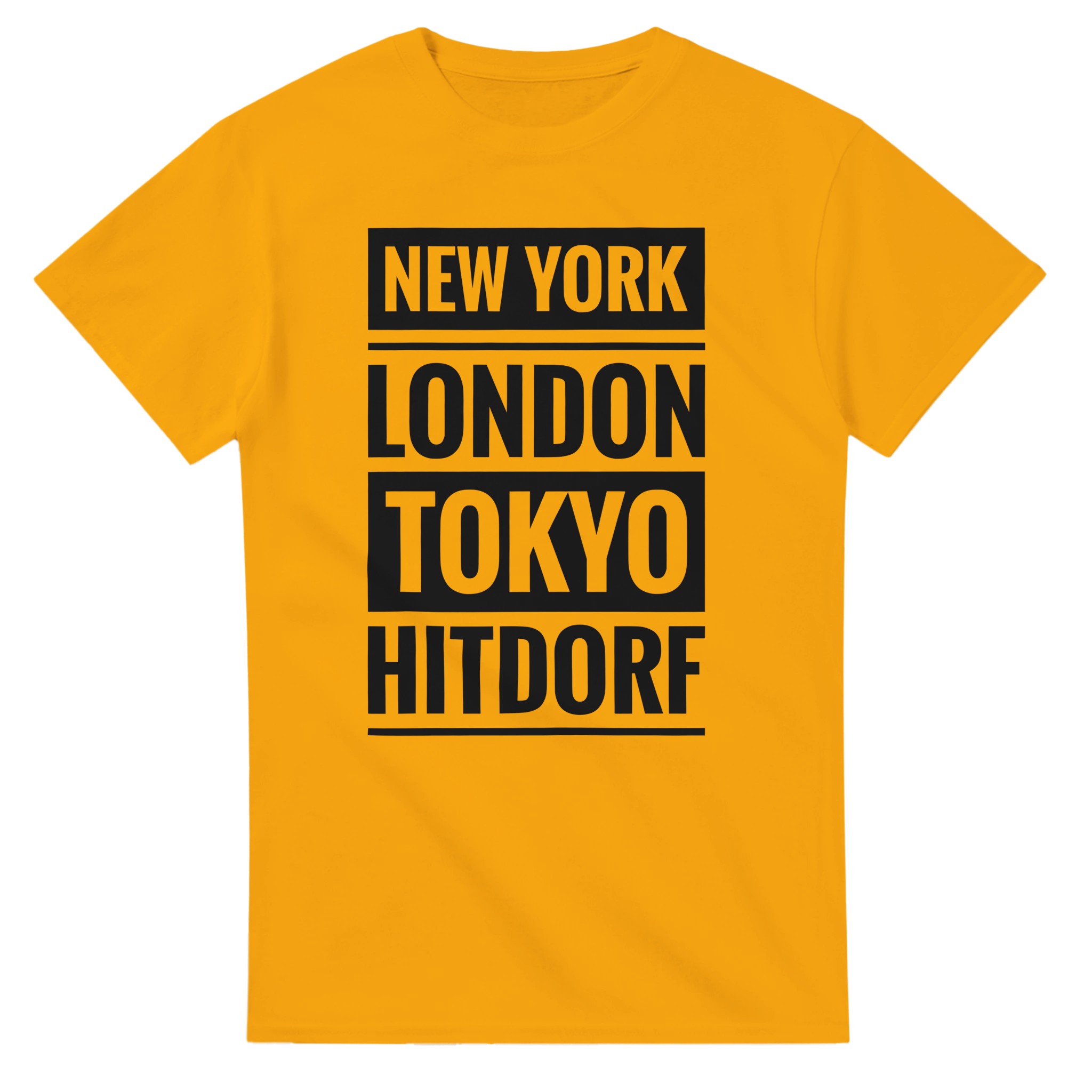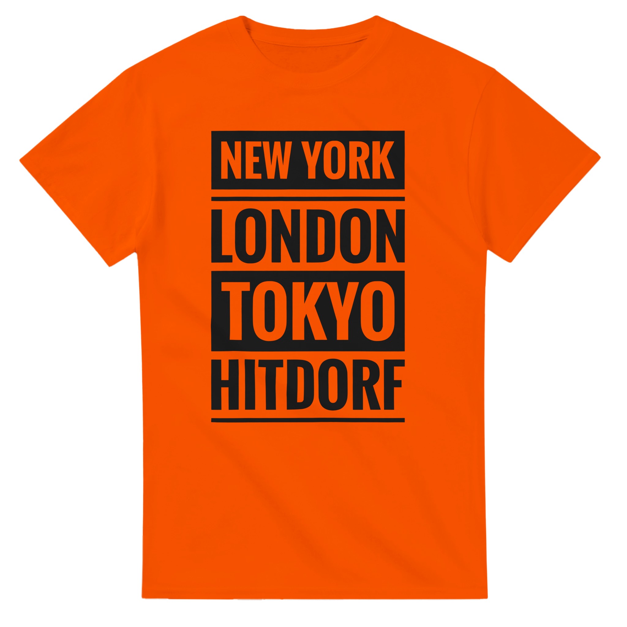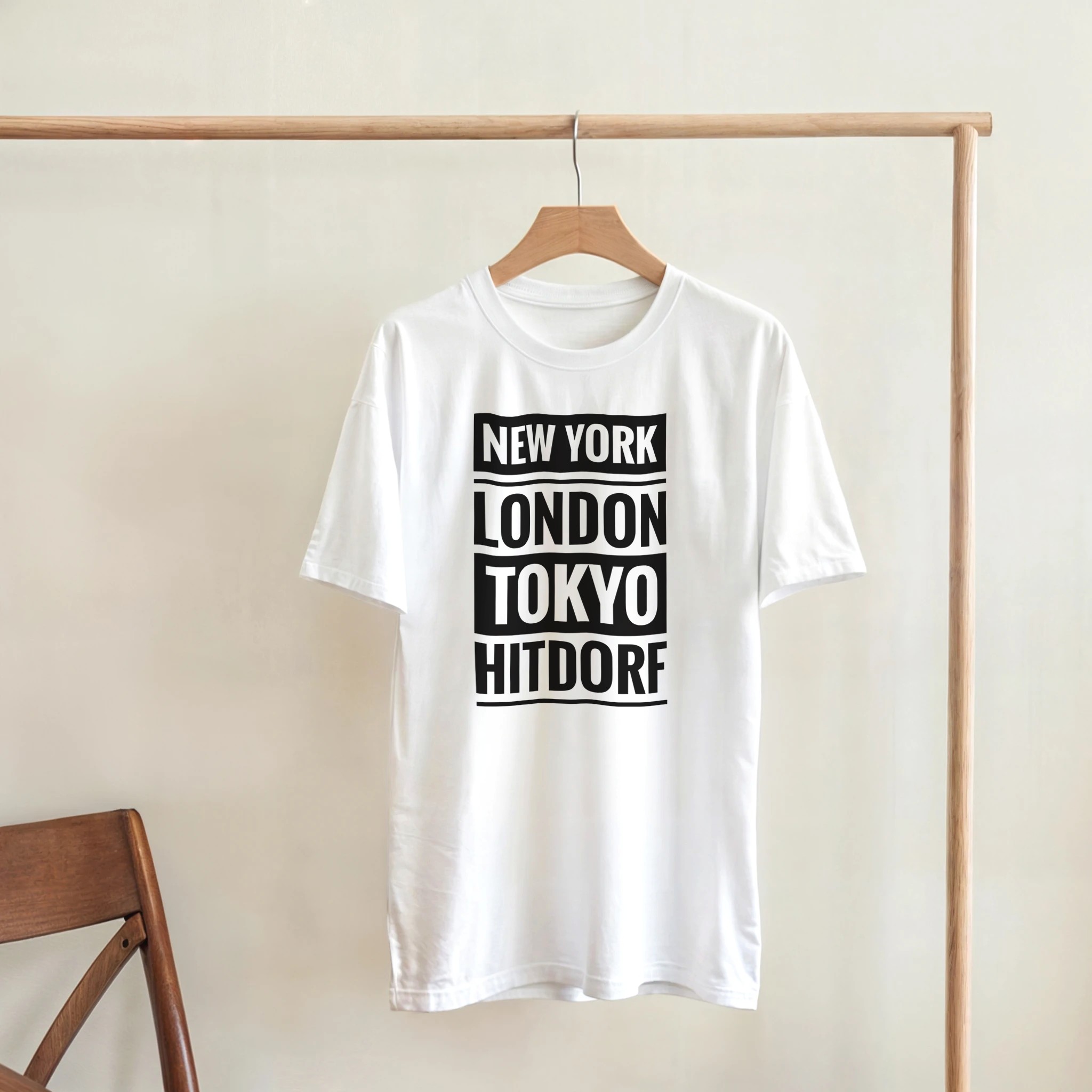 Dieses T-Shirt verbindet große Metropolen mit einem ganz besonderen Ort: Hitdorf. Der Schriftzug „New York / London / Tokyo / Hitdorf“ in klarer Blockschrift untereinander macht das Shirt zu einem coolen Statement für Heimatliebe mit urbanem Flair. Zeige, dass Hitdorf für dich genauso wichtig ist wie die bekanntesten Städte der Welt – lässig, selbstbewusst und modern.